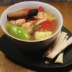 Fish soup made with three types of fish and a touch of cinnamon. -