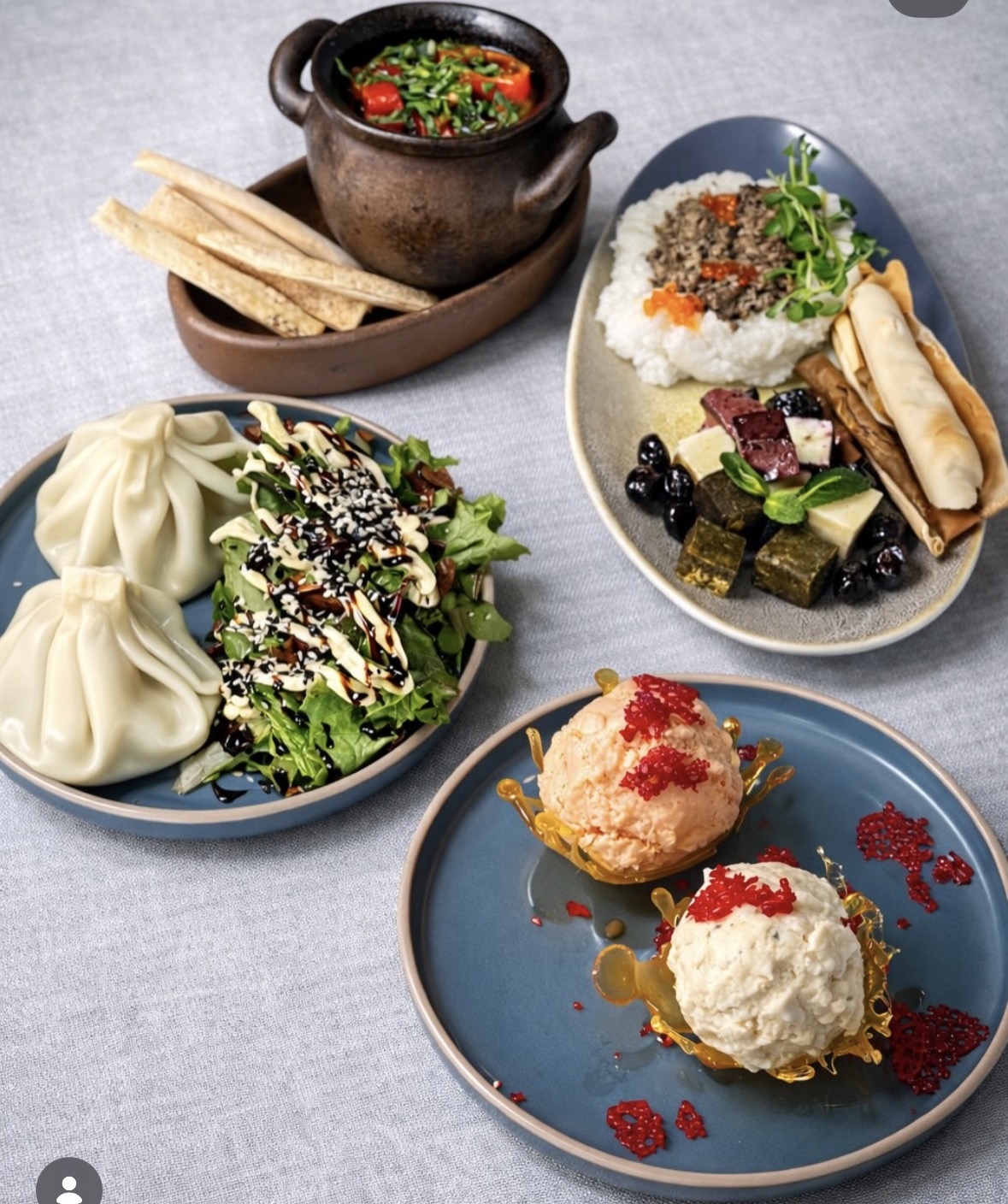 Damageovna Set (з бараниною) Categories: 0 Purmarili Festival салат з яблучними чіпсами, Khinkali — баранина , Gomi & Kuchmachi — печінка осетра та ікра, сирний сет (мед, вино, чебрець), Основна страва — чанахі з баранини, Десерт — морозиво мацоні + омбало + аджика 45₾